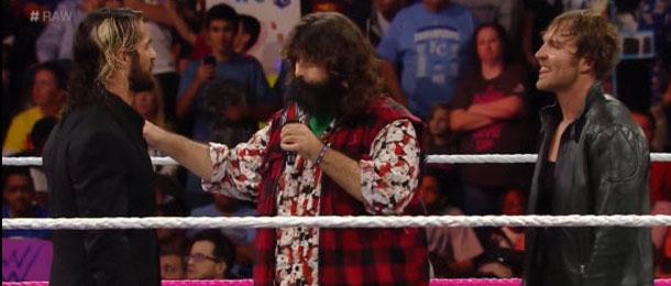 Dean Ambrose vs. Cesaro:- Ambrose comes out second and stands on the announcers table and talks about destroying Seth Rollins last night and that he doesn't care why or how Bray Wyatt did what he did. But that he enjoyed being in hell and that's where he will take Bray Wyatt. Ambrose jumps Cesaro with the microphone and assaults Cesaro in the ring, all the way up the ramp and pounded Cesaro's head with the microphone and called out Wyatt. The match never started.